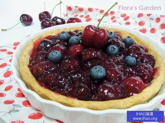 4烤好的派皮冷卻後加入也已冷卻的櫻桃餡,就完成美麗酥脆的香甜櫻桃派
