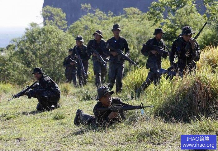 當地時間5月29日,菲律賓軍事學校學員在甲米地省南部特爾納特海軍基地舉行搶灘登陸訓練