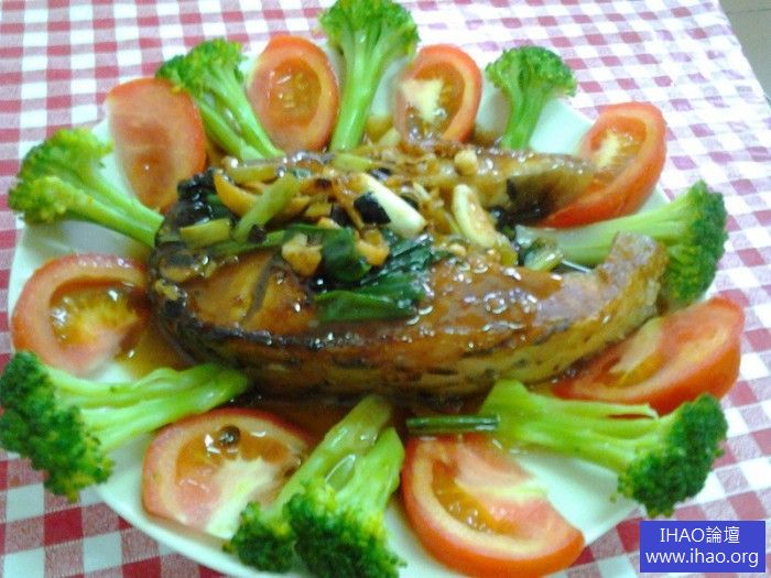 草魚 一塊 綠花椰 半顆 番茄 半顆 蒜頭 5顆 蔥 1支 李錦記舊庄特級蠔油 1匙半 糖 少許 酒 少許 薑絲 少許 黑豆豉 少許 水 少許
