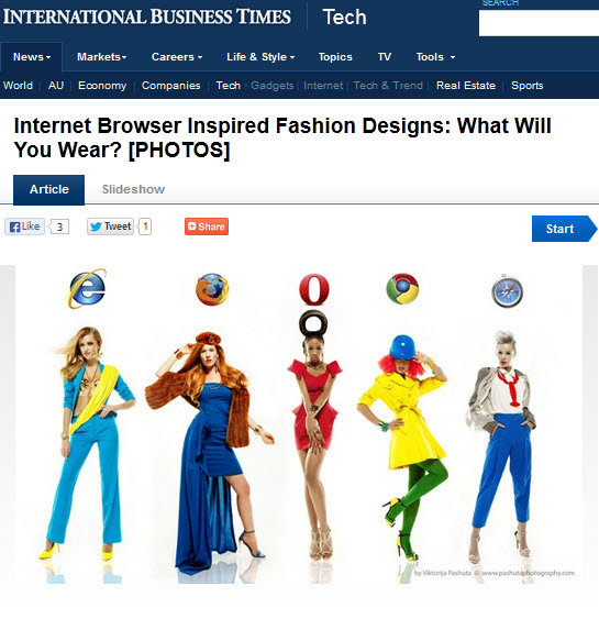 攝影師Viktorija Pashuta發表了系列攝影作品-「瀏覽器女孩」,只見圖中一系列女模特兒穿上瀏覽器配色,穿著鮮豔看起來充滿活力之餘,你認得出她們是哪個瀏覽器嗎?