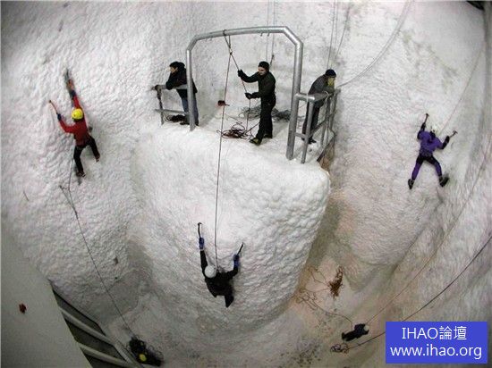 這座場地是世界上最大的室內雪山攀岩地,每條攀岩線路都是手工設計,類比戶外環境修建。房間保持在零度以下,有造雪設備等設施保證雪的質量。