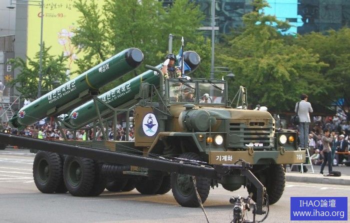 在閱兵儀式上,南韓首次公開了射程300公里的「玄武2型」和射程1000公里的「玄武3型」彈道飛彈,還有射程300公里的陸軍戰術飛彈(ATACMS)、潛對艦魚雷「白鯊魚」和「青鯊魚」及防空飛彈「SM-2」等尖端武器。「玄武3型」飛彈去年11月已首度部署在南韓海軍驅逐艦。
