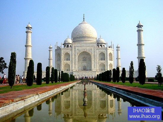 作為『世界新七大奇蹟』之一的泰姬陵(Taj Mahal)坐落於印度北部古都阿格拉,是17世紀蒙兀兒王朝第5代皇帝沙賈汗為了紀念已故皇后姬蔓·芭奴而興建的陵墓,竣工於1654年。這座印度知名度最高的古蹟被譽為『忠貞愛情』的象徵,印度詩人泰戈爾曾用『一滴永恆的淚珠』來讚美它。雖然年歲古遠,但泰姬陵仍具有很典型的後現代風格,融合了波斯、土耳其和印度的建築傳統元素。泰姬陵內部是明令禁止拍照的,遊客在進入時必須先寄存一切攝像器材和隨身攜帶的食物,在離開時方可取走。要想留下它的芳容,只能在外部遠遠拍下它的輪廓了。