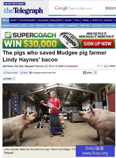 兩隻體重都超過350公斤的豬「Peanut」和「Midget」,是Haynes的心肝寶貝,雖然體型非常龐大,但是Haynes還是會與牠們摟摟抱抱,感情相當甜蜜。