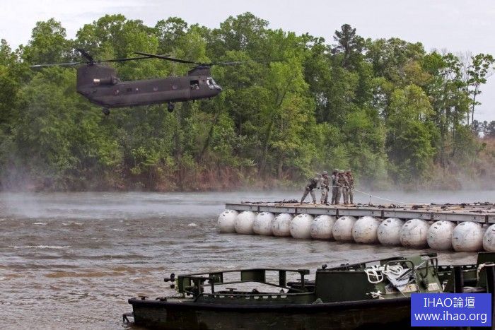 美軍362工兵連使用CH-47實施浮橋吊掛組裝訓練 本寧堡 2013.04.24