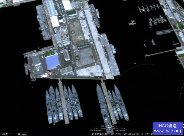 佐世保基地部署著美海軍的兩棲攻擊艦,圖中為LHD2埃塞克斯號和LHD6好人理查德號。在碼頭的南側則是海上自衛隊的軍艦。