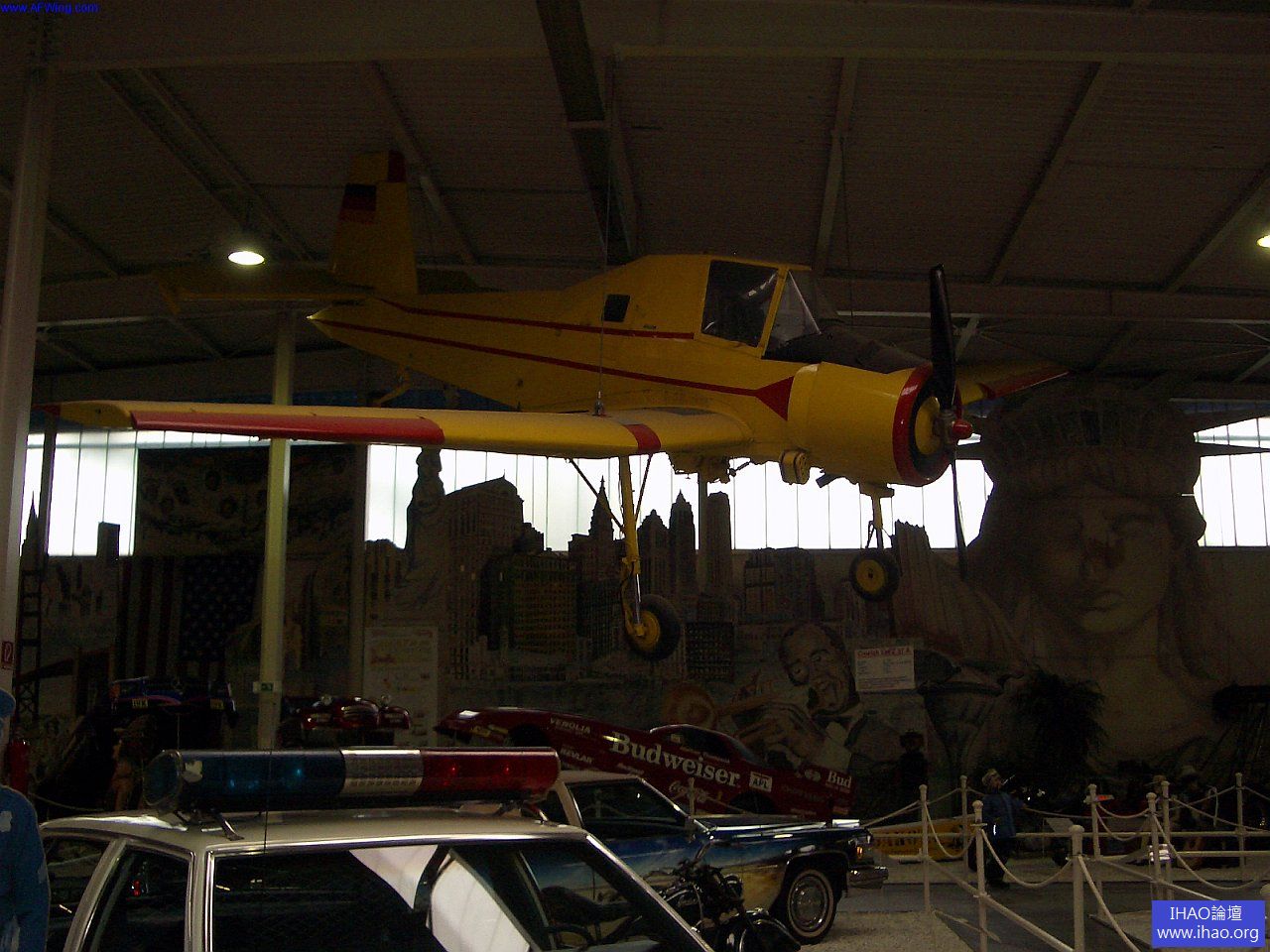 室內展廳入口,展品混合了汽車與飛機