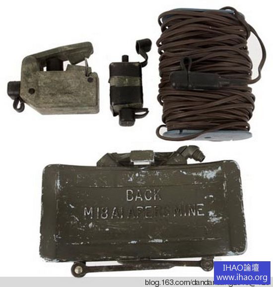 與原型M18 比較,M18A1 堪稱完美,軍方反饋的各種不足都有了滿意的解決方案。對於威力問題,設計師們的解決方案是用威力更大的C4 炸藥代替了原先的TNT 炸藥,並將藥量增加到680 克,從而保證了鋼珠有更高的速度和更大的殺傷面積。而針對電源問題的解決方案是,除了兼容原先的電池盒,還增加了一個M57 脈衝點火機,後者其實是個小型發電裝置,連續按壓操作手柄3 次,就能產生3V 的電壓,足以引爆地雷中的電雷管。同時增加的還有一個可謂神來之筆的增壓裝置,當脈衝點火機和增壓裝置組合使用時,其電壓就能保證同時引爆數枚地雷的需要。至於殼體,M18A1 改用了由玻璃纖維增強的聚苯乙烯塑料,此後再也沒有出現過意外破裂,而且重量也沒有超出軍方規定的上限。