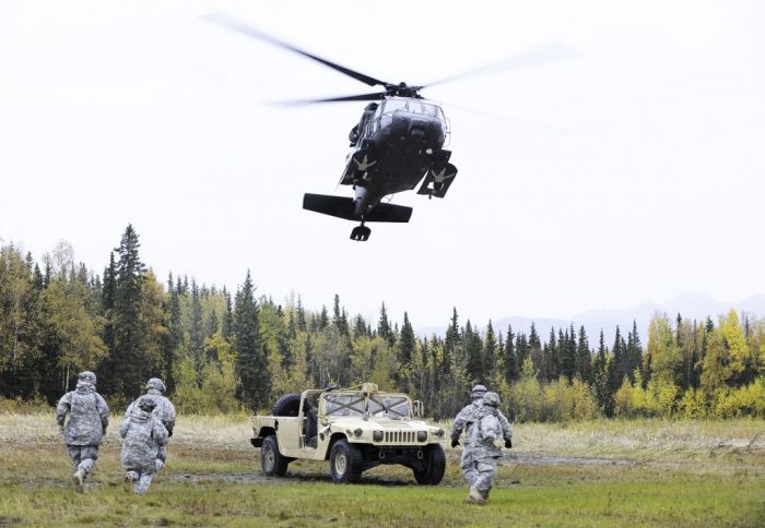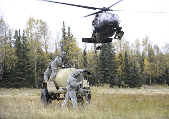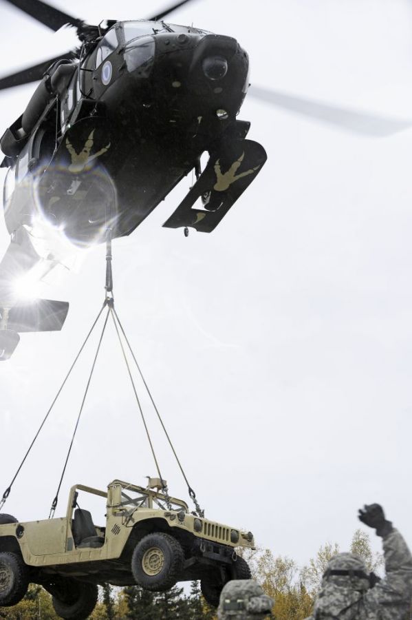 陸軍國民警衛隊第207航空團 第六工兵營 前進支援連,9月20日2012年進行直升機吊掛操作。