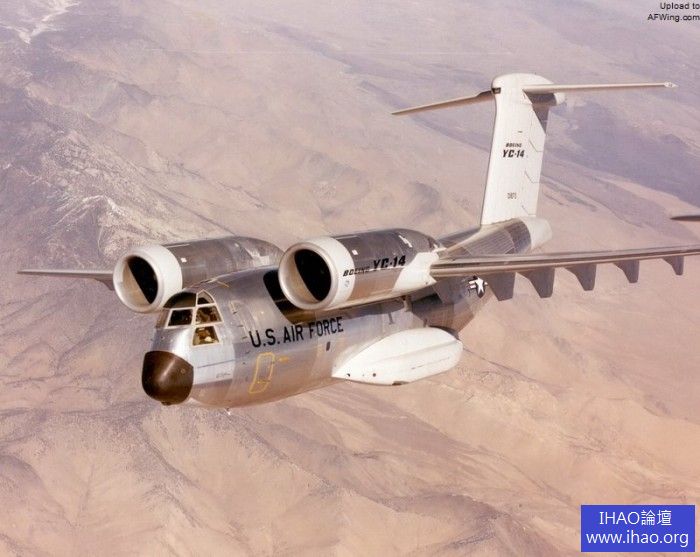 圖為演示短場起飛的YC-14,總體上而言,YC-15的外部吹氣襟翼更接近傳統襟翼,付出的重量代價也較小。