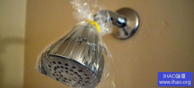 8. 在袋子裡加白醋套在花灑上,可以軟化水漬。