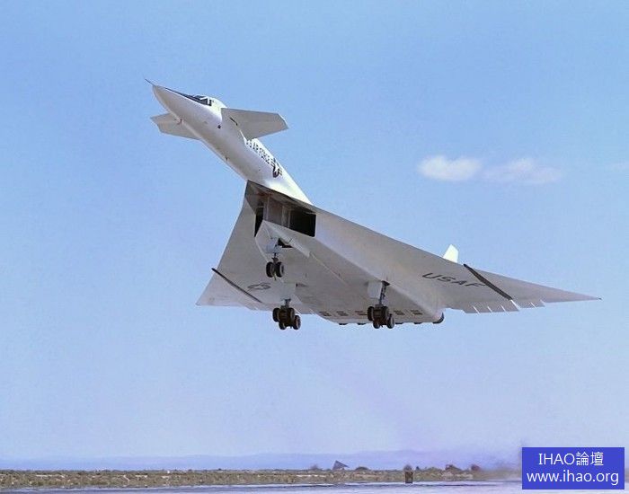 起飛中的XB-70A,注意其可變翼端呈現水平的低速飛行狀態