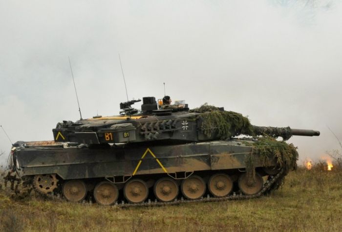 10月25日,德國境內霍恩費爾斯訓練基地內,德軍一輛豹IIA6主戰坦克參加軍演。該演習由德國、保加利亞、美國等多國部隊聯合舉行。共有1500人左右參加了演習。其中,德軍參演力量比較強大,最新型的豹IIA5\A6坦克全都上陣。保加利亞軍隊也派出BMP系列戰車參演。