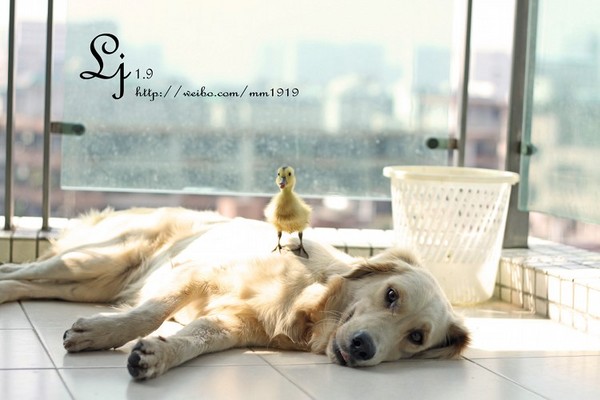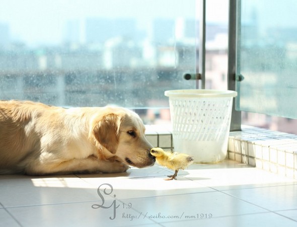 住在廣州的黃金獵犬「菲菲」跟一隻小鴨成為跨越種族的好朋友,會互相臉親臉,非常親近。小鴨甚至跳到菲菲的水碗裡,把它當泳池和澡盆,在上面戲水和洗澡。菲菲一開始雖然傻眼,但隨後絲毫不介意,繼續喝。