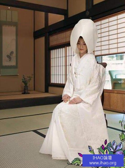 而日本的新娘在臨出門之前卻要在頭上戴一塊白蓋頭和面紗,然後才能出門。