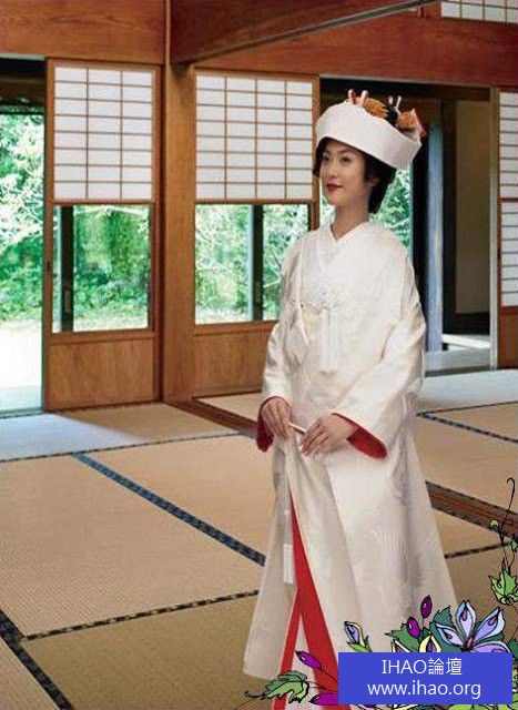 白色絲綢和服原本是18世紀和19世紀日本武士結婚時新娘所穿的禮服。此時的白色既是新生活的開始的象徵,同時也意味著原有生活的結束。
