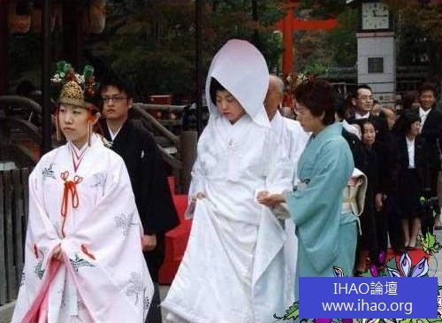 日本的新娘既不到男方的家裡,也不到教堂,而是要到神社去祈禱神靈,
