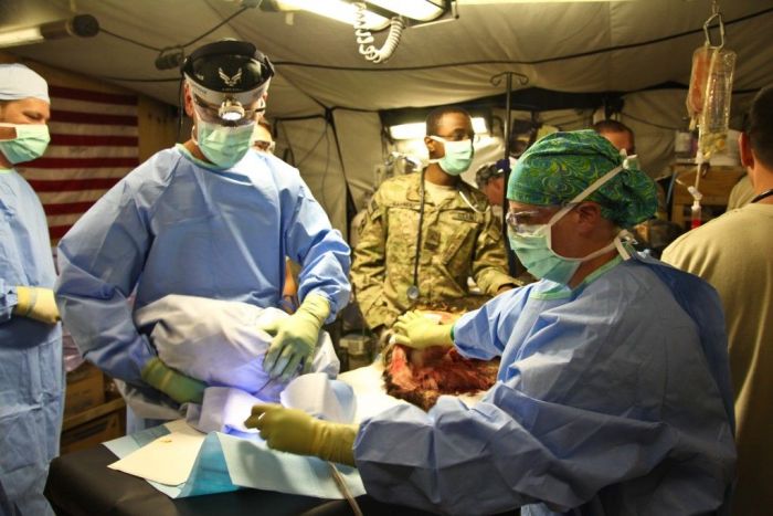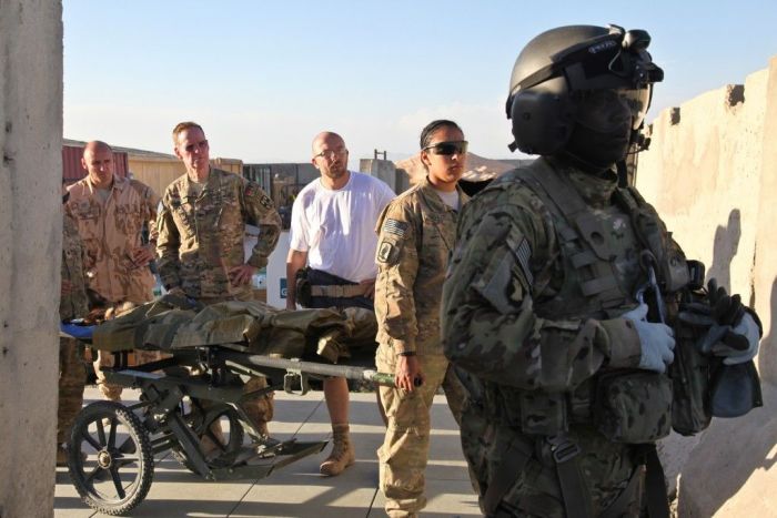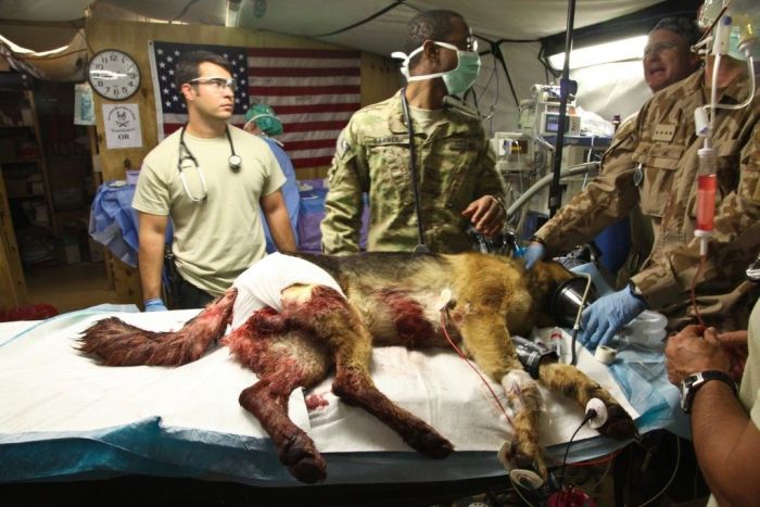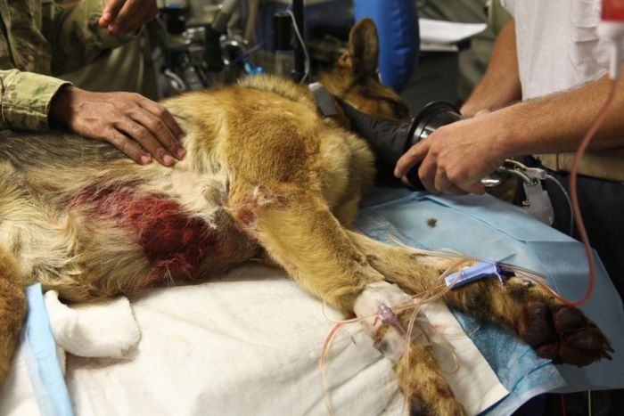 一隻美軍炸藥犬在阿富汗受傷,美軍醫護人員救治中 2012.09.30