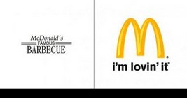 麥當勞最初竟然是做燒烤的?沒錯,這logo上不是寫著Barbecue嘛!的確,1940-1948年,那時候的麥當勞確實是做燒烤的。但麥當勞及時醒悟漢堡包將更受歡迎,所以從1948年起,麥當勞開始向漢堡轉型,logo也隨之變化,最新版本帶著“我就喜歡(I’mlovin’it)的設計時間是2003年。
