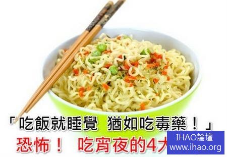 第三個害處/如果宵夜吃的多是高脂肪、高蛋白的食物,很容易使人體內的血脂突然升高。人體的血液在夜間經常維持 高脂肪含量,若此時又進食太多,或是頻繁、屢次進食,將導致肝臟合成的血膽固醇明顯增多,刺激肝臟製造更多的低密度脂蛋白。此外,一旦運載過多的膽固醇到 動脈壁堆積(包括陰莖動脈),也成為動脈粥樣硬化和冠心病、陽痿的誘因之一。同時,長期宵夜過飽還會反覆刺激胰島,使胰島素分泌增加,久而久之,便造成分 泌胰島素的β細胞功能減退,甚至提前衰退,發生糖尿病──以上這些病症均能影響性功能,導致性衰退。