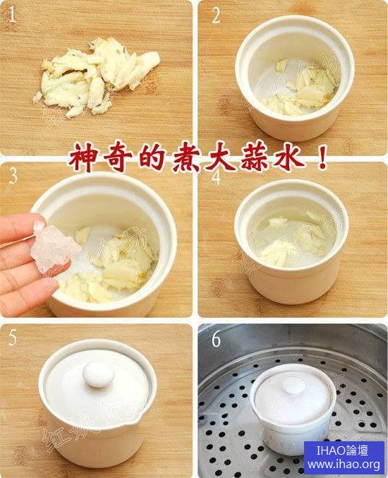 方法三:蒸 大蒜水:小孩咳喘時用大蒜2-3瓣,大人用7-8瓣,拍碎,放入碗中,要在碗上加蓋,再放入鍋裡去蒸,大火燒開改小火15分鐘,嚴重時可一日三次,可以不 吃大蒜只喝水。第二天再蒸蒜水時就要加冰糖了,小兒放一粒,大人放二粒,大蒜性溫、入脾、胃、肺經,民間多用大蒜治療咳嗽、氣管炎、哮喘、肺結核。