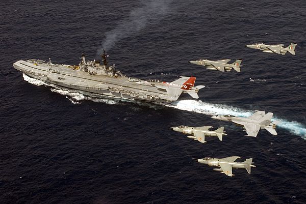 原為英國的赫密士號航空母艦(HMS Hermes),該艦從二戰1944年起開始建造,然而由於戰爭結束,英國對航空母艦的需求完全消失,施工進度慢,在1953年6月才完成,1982年參與了福克蘭群島戰爭的特遣艦隊,並在之後的1985年7月除役,在1986年4月24日以2500萬英鎊賣給印度。