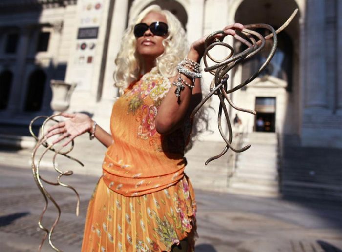 美國紐約,Chris Walton在《2012年吉尼斯世界紀錄》新書發佈活動上展示她的指甲。她的指甲已經留了18年,長度加起來有20英尺(約合6.1米),成為了吉尼斯認證的「世界最長指甲」。