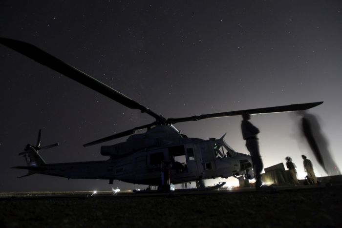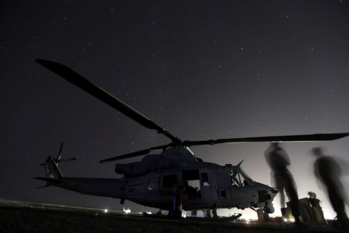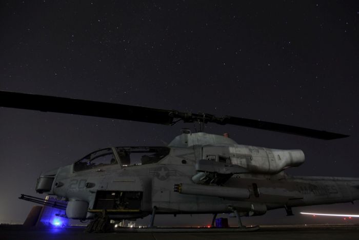 美海軍陸戰隊與的海軍輕型攻擊直升機中隊(HMLA)469,2012年10月4日,赫爾曼德省。
