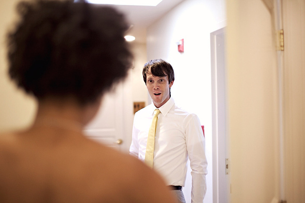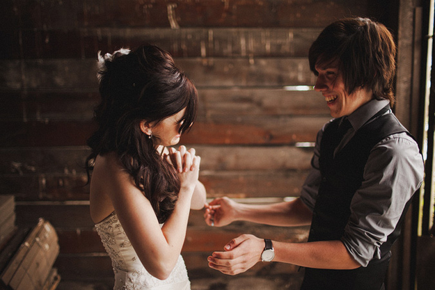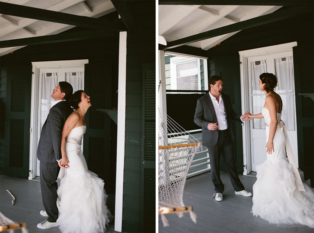 不過還是讓我們一起感受新郎的喜悅,看看他們第一次看到新娘穿婚紗時的表情吧!