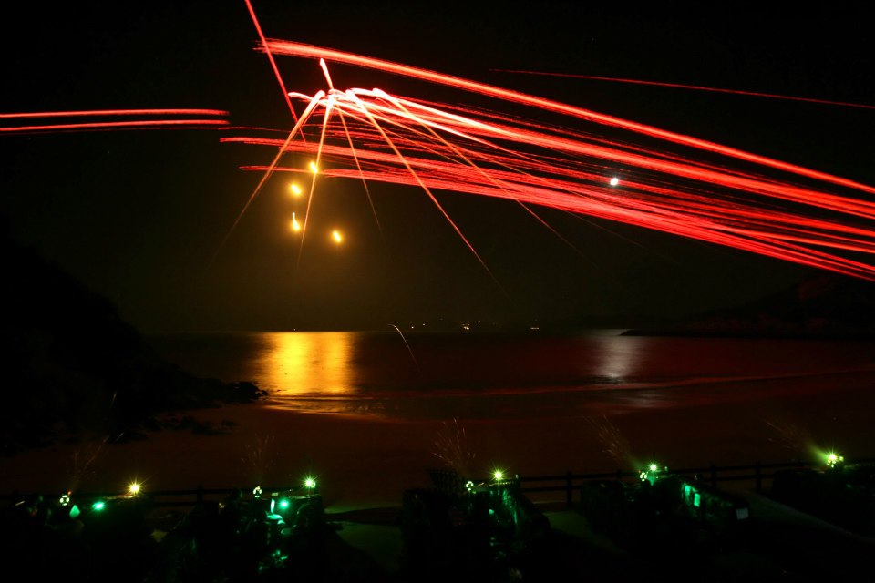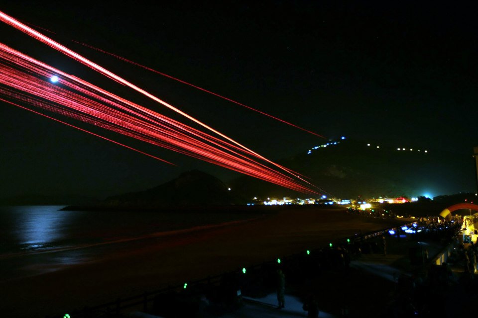 陸軍馬祖防衛指揮部廿日舉行一0一年度「萬平操演」,由一二0迫砲發射照明彈模擬敵機進襲,防區各式武器立即向目標射擊交織火網在夜空中留下美麗光影。