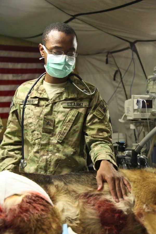 一隻美軍炸藥犬在阿富汗受傷,美軍醫護人員救治中 2012.09.30