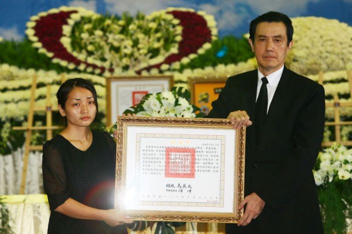 馬總統上午由國防部長高華柱、參謀總長林鎮夷上將的陪同,前往陸正中校等五員聯合公祭典禮,總統弔唁烈士英靈、頒贈褒揚令後,逐一慰問遺眷並頒發慰問金;隨後,由高部長頒授旌忠狀、「干城獎章」及追晉官階給烈士遺眷,以表彰烈士們忠勇愛民的精神。