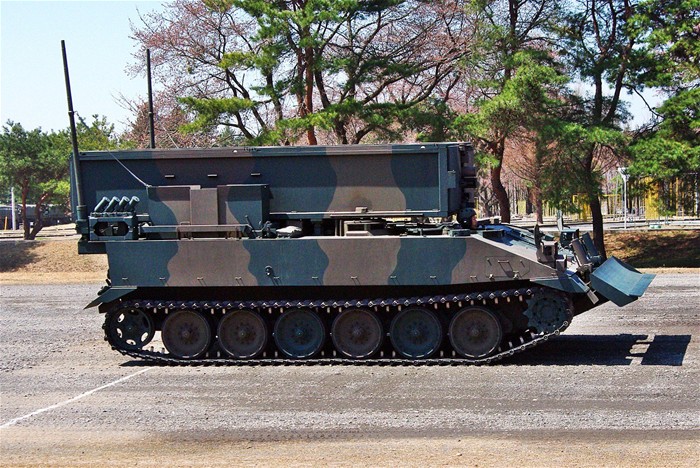 它於1992年正式列裝,先後裝備了勝田工兵學校、富士教練團和駐北海道的第7裝甲師工兵營,每個單位2-4輛。該車由底盤和火箭爆破掃雷器組成,戰鬥全重25噸,乘員2人。每輛車有2具並列的火箭發射器。每發掃雷火箭彈由推進火箭和穩定尾翼兩部分組成,重1.3噸,射程約800米。火箭彈體內裝有26個串聯的炸藥包,火箭發射後依次牽帶出,這些炸藥包著地爆炸後,可開闢出一條長200米、寬7米的通道,掃雷效率大於95%。在掃雷車發射完2發掃雷火箭彈後,由掃雷車上的2名乘員和拖車上的2名乘員開始重新裝彈。裝1發火箭彈需1小時。