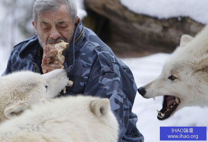 德國薩爾州的79歲男子佛羅因德堪稱不折不扣的「狼人」。1972年,他創建了一個狼群保護區。自那時起,他共飼養過70餘隻各種品種的狼。為了確立自己在狼群中的領袖地位,他堅持有肉自己先吃,然後才允許狼吃。就這樣,他成了「狼王」,狼群不但不會攻擊他,而且聽命於他。