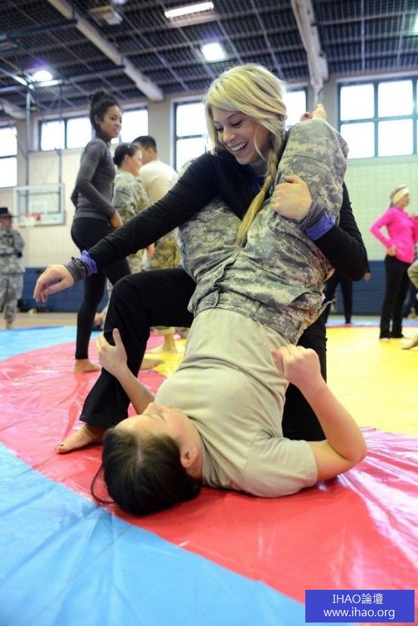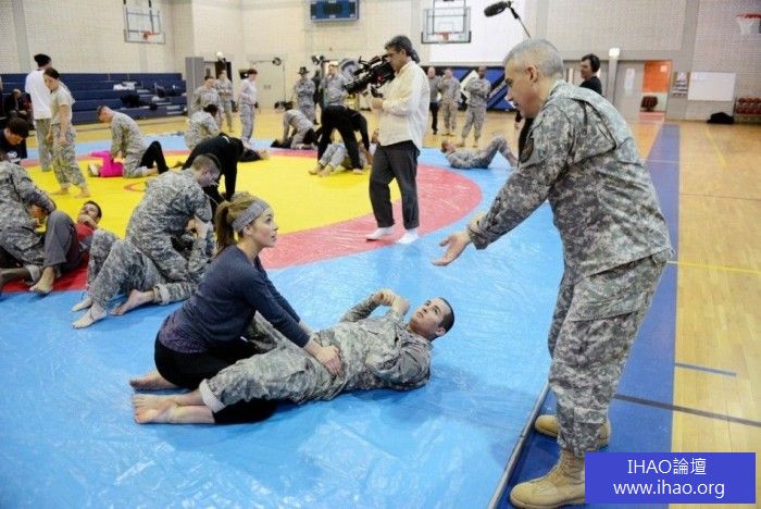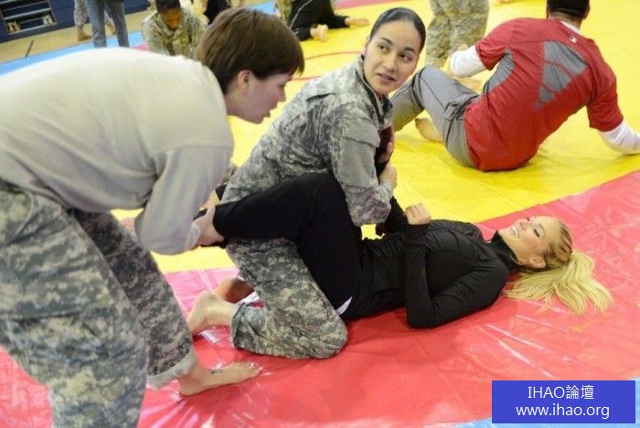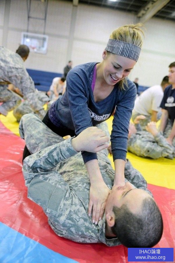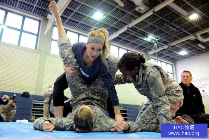 美國福克斯電視台體育頻道近期舉辦了員工進軍營進行春季訓練。他們在軍營進行了格鬥訓練、體能訓練、射擊訓練及參觀各種軍用戰鬥車輛。圖為福克斯體育台的美女員工正在進行格鬥訓練。