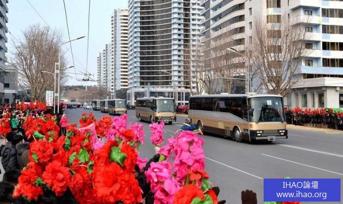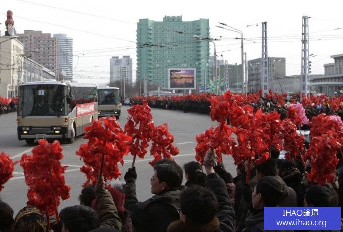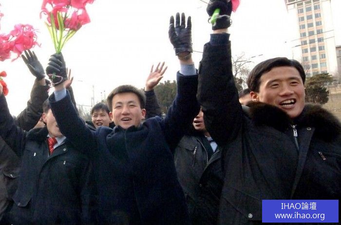 當地時間2013年2月20日平壤,民眾手捧紅色花束,歡迎核試驗功臣