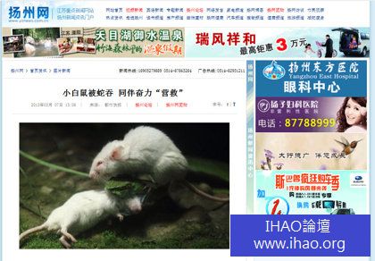 杭州動物園近日給蛇餵食小白鼠,其中一隻小白鼠迅速被蛇咬住,另一隻小白鼠見狀,立刻上前拉扯蛇頭,想從蛇口中營救出自己的同類。