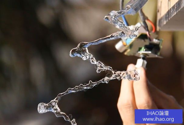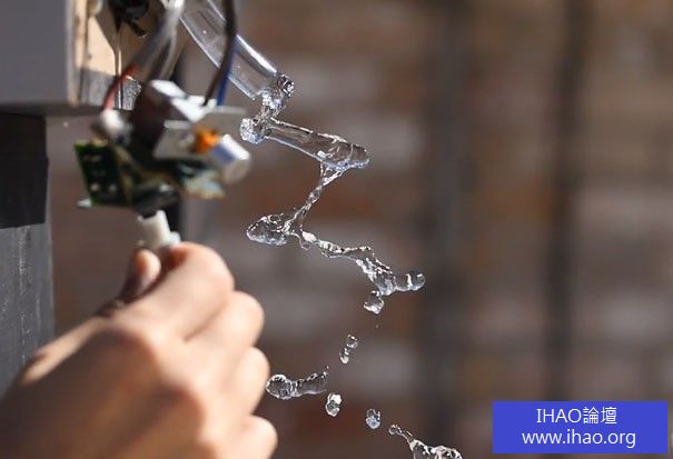 技巧,是你只能看到它通過 24 fps 相機。安裝包括附加到揚聲器與 1 或 2 英寸,垂下,這樣,當揚聲器產生的聲音,它震動軟管以及水軟管。音訊電纜從電腦附加到揚聲器和健全的軟體調整至 24 hz。當 Brusspup 打開音樂和水時,他通過他的相機看到的結果是水中的樓梯及螺旋形狀向下運行。如果您設置至 23 或25 的赫茲的頻率,可以得到不同的結果 !