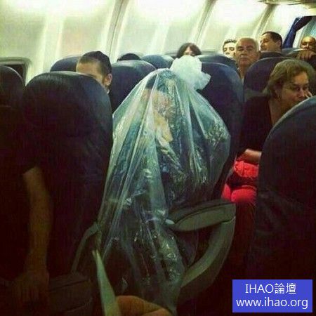 國外分享網站reddit最近流傳一張照片,一名超正統派猶太教徒(Ultra Orthodox Jewish)搭乘飛機時,以一個真人大小的塑膠袋包裹住全身,似乎是為了維護自己的「宗教純度」,而不能接觸有女人的空氣。