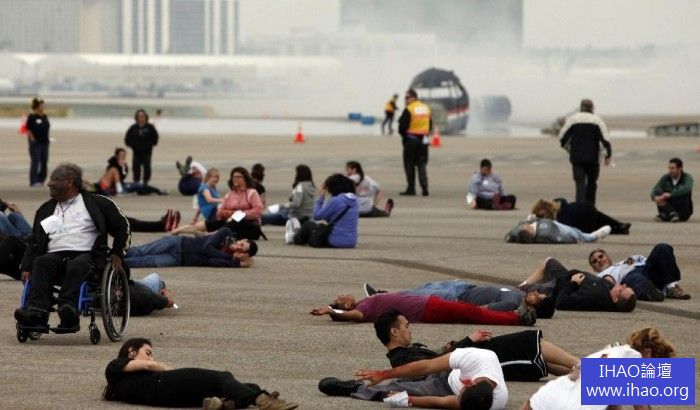 當地時間4月24日,美國洛杉磯國際機場舉行演習,模擬一架飛機失事,消防人員對眾多「遇難者」進行營救。這個由美國聯邦航空局聯合警方、消防員的演習每三年至少舉辦一次,旨在增強各方對緊急事件的反應速度和營救技巧