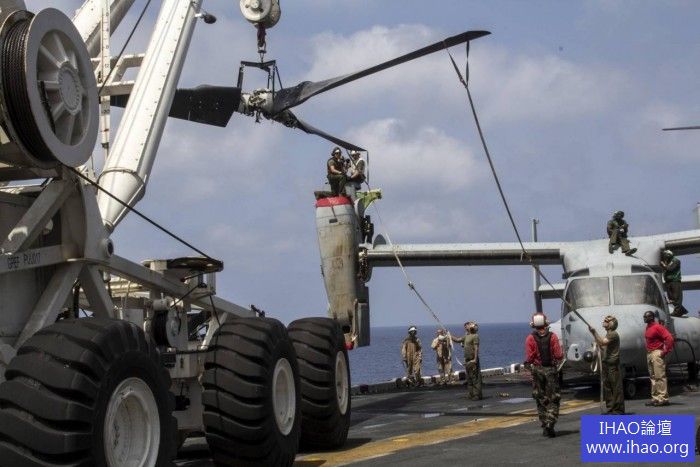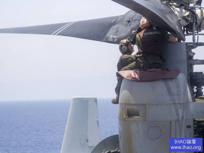 美國海軍陸戰隊第26遠征軍在 LHD-3上 維修魚鷹機 2013.05.04