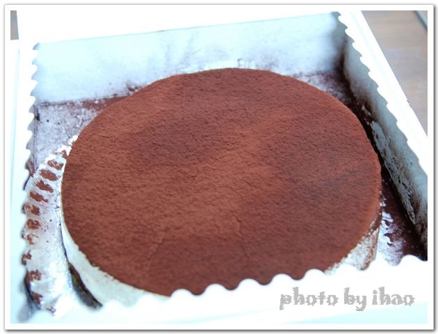 提拉米蘇由上到下為~ 可可粉、幕斯、巧克力蛋糕、幕斯、消化餅乾