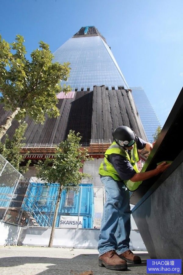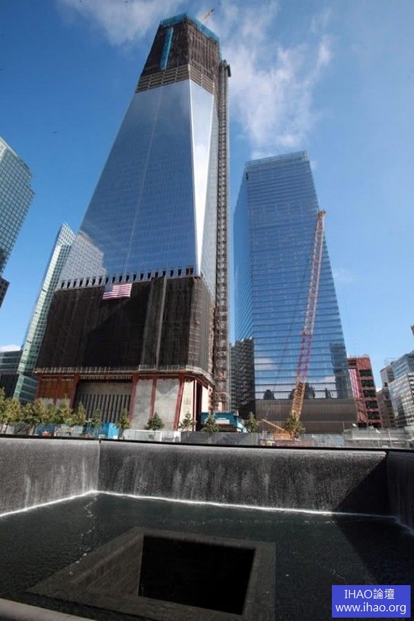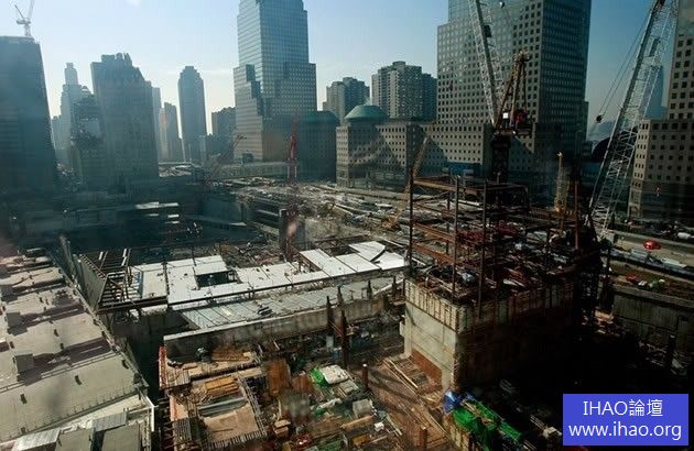 104層高的摩天大樓正在建設中的西北角,佔地16英畝的世界貿易中心遺址,佔據了原來的8層高的世界貿易中心曾經站立的位置。