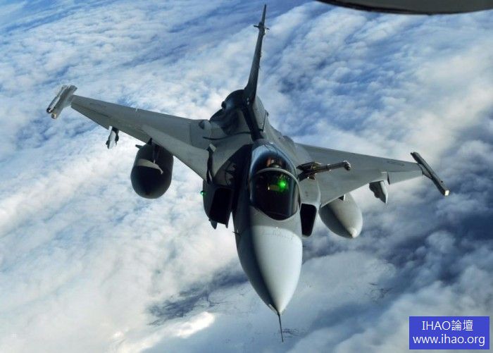 2013年9月24日,瑞典空軍一架參加代號「北極挑戰」空戰演習的JAS-39C鷹獅戰機完成空中加油正準備返回演習區。JAS-39C在演習中扮演「紅軍」,其對手是美國空軍強大的F-15C鷹式戰機與FA-18C大黃蜂戰機群。