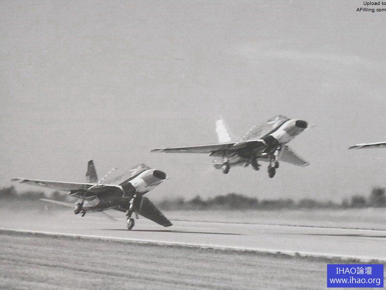 F-100D編隊起飛,後面這架的翼尖差點擦地