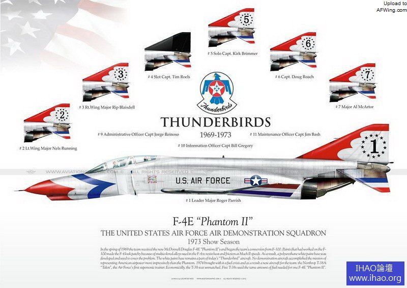 由於菱形編隊過於密集,再加上F-4的噴流略微下偏,所以會把飛在編隊最後面4號機的垂尾熏黑,最後乾脆塗成了全黑色
