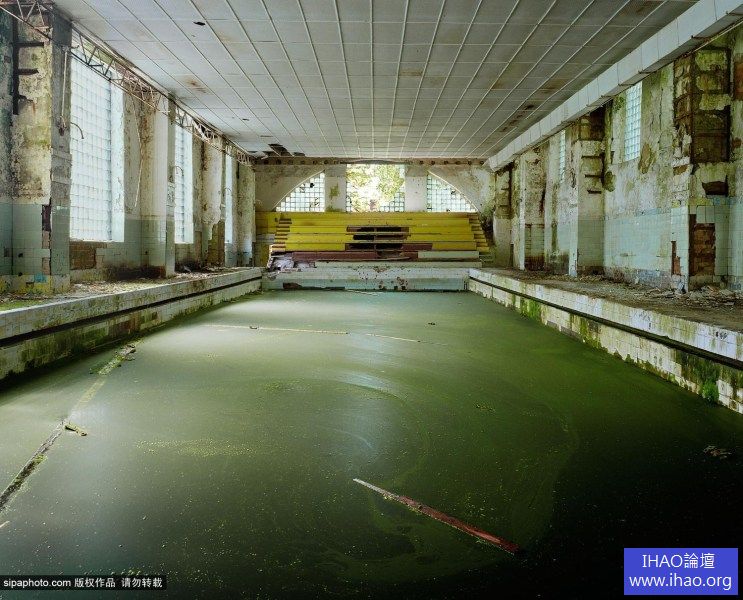 2007年,拉脫維亞,蘇聯解體後廢棄的軍事基地裡積水的游泳池,但這裡早已經是一潭死水。
