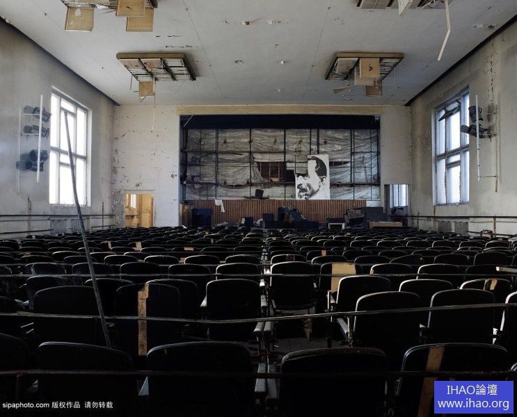 2006年,俄羅斯莫斯科,蘇聯解體後廢棄的軍事基地, KGB基地講堂。牆上的是被列寧譽為英雄的費利克斯·捷爾任斯基的畫像。