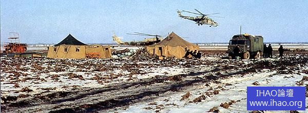 阿富汗的炎熱高原條件對米-24 的飛行員是很大的挑戰。由於發動機出力不足,垂直起落要大幅度減少武器彈藥的裝載,所以極少使用,一般都是短劇滑跑起落。但“阿富汗特色”的短距起落也很有特色。茹可夫斯基試飛中心開發了一種短距起飛的方式,先把旋翼轉起來,用升力把機尾抬起10-12 度,這樣可以得到很大的前飛角度,發動機可以把本來用作升力的功率用作前進的動力,直升機加速前飛時是就是這樣頭朝下、尾朝上的,但這時直升機還在地面起飛階段,所以整個飛機都平衡在首輪上,然後加大馬力滑跑,通常幾十米就可以飛起來。但這個動作要求操縱非常精確。抬尾過少,起不到作用;抬尾過多,主旋翼會打到地面;馬力加得過快過猛,也會造成主旋翼打到地上。巴格拉姆基地的一架米-24 在緊急起飛時,就是動作過猛,主旋翼打到地上,受到損傷。還好飛機還是飛起來了,除了旋翼發出巨大的怪聲音,像一大群憤怒的黃蜂在呼嘯,羞愧難當的飛行員不好意思在自己的基地降落,飛到鄰近的一個簡易基地,等待維修人員的到達。