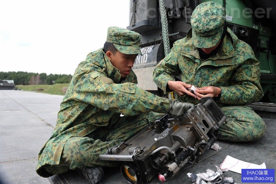 新加坡是一個小國家,其本土並沒有多少空間供部隊訓練用,所以,該國軍隊的大規模訓練及演習都在澳大利亞、新西蘭、德國、美國、台灣等國家和地區進行。新加坡實彈演習就是在德國的卑爾根北約訓練營區進行的。圖為新加坡女裝甲兵